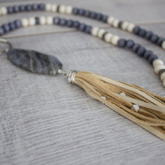 On Thursday, I especially felt this way when one of my favorite necklaces was swept away. Her name was "Snow Queen," and she featured a gorgeous chunk of Labradorite (swoon!), as well as bone, wood, Labradorite rondels, & a leather tassel.